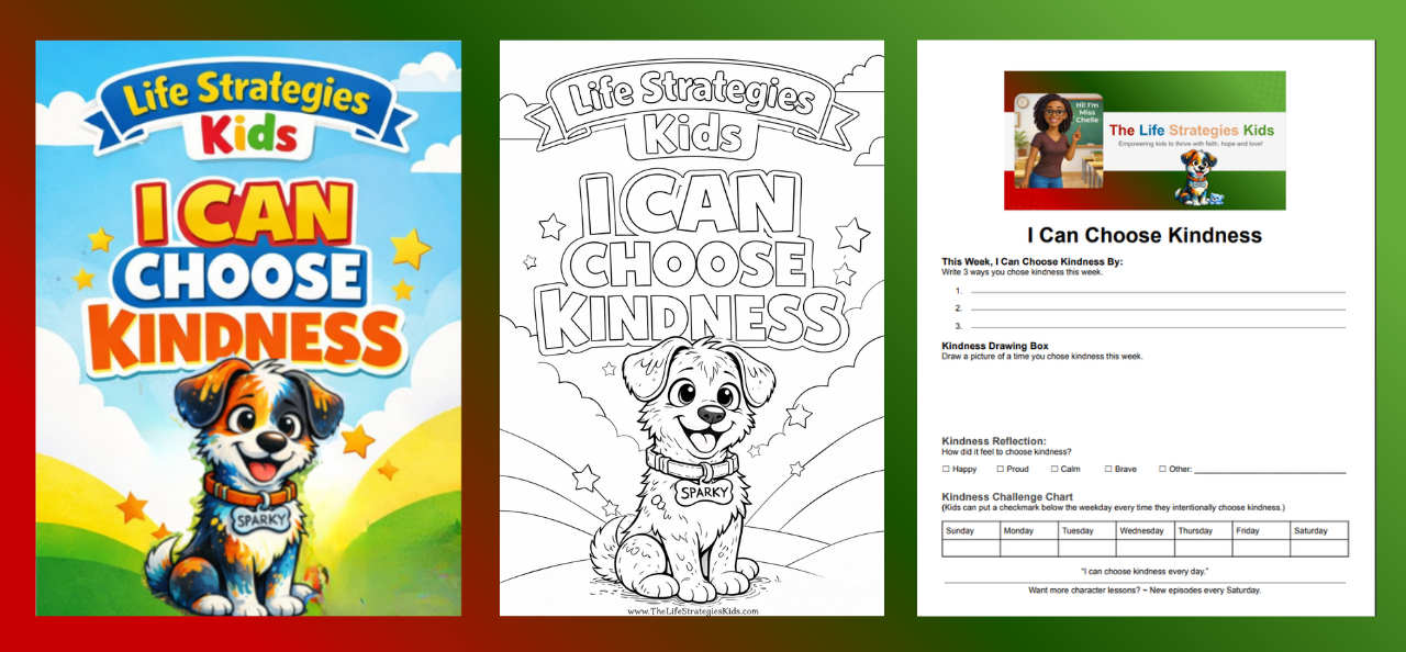 Reinforce this week’s Life Strategies Kids lesson with the “Kindness Episode Activity Pack.” This printable set includes a reflection activity sheet designed for mixed ages and a clean line-art coloring page featuring Sparky and the episode’s identity statement. A simple way to help your family practice choosing kindness together.